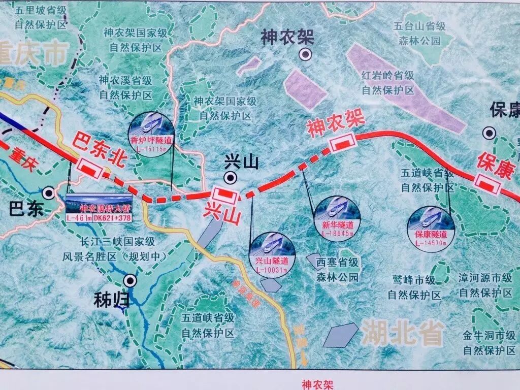 郑万高铁(郑州—万州),是郑渝高铁(郑州-重庆)的重要组成部分,郑万铁路湖北段正线长度287.187公里,设计速度为350公里/小时,在湖北境内设襄阳东津、南漳、保康、神农架、兴山、巴东北等车站。2016年11月,湖北段建设已全面启动。