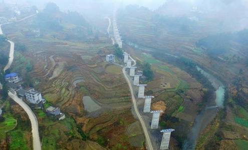 △黔张常铁路咸丰县境内一大桥施工现场